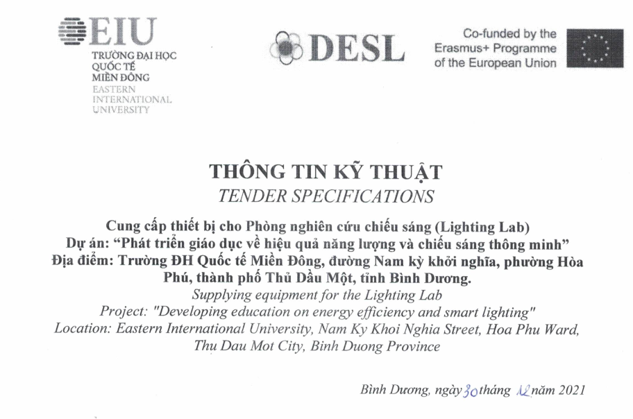 Thông báo mời Thầu Cung cấp thiết bị cho phòng thí nghiệm chiếu sáng (Lighting Lab)