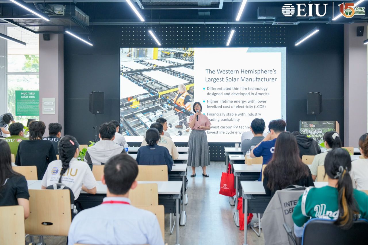During the program, two guest speakers from First Solar Vietnam—Mr. Ha Le, Operations Manager, and Ms. Han Nguyen, Senior HR Manager—shared practical insights into how critical thinking is applied in the corporate environment, particularly at First Solar.