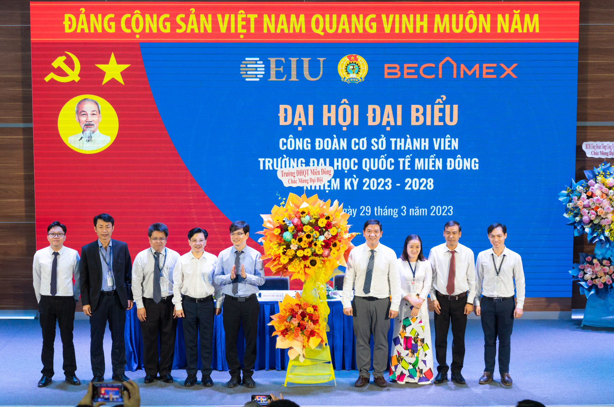 Sáng ngày 29/3/2023, Công đoàn cơ sở Thành viên Trường Đại học Quốc tế Miền Đông tổ chức Đại hội Đại biểu Công đoàn cơ sở (CĐCS) lần thứ II, nhiệm kỳ 2023 – 2028. Tham dự chương trình, về phía Công đoàn cấp trên có  Đ/c Nguyễn Danh Tùng – Chủ tịch CĐCS Tổng Công ty BCM IDC cùng các Đ/c trong Ban chấp hành CĐCS Tổng Công ty BCM IDC, Về phía Trường Đại học Quốc tế Miền Đông, có ông Nguyễn Tấn Lợi – CT Hội đồng Trường, TS Ngô Minh Đức – Hiệu trưởng và Ban giám hiệu Nhà Trường, Đ/c Mai Sơn Tùng – Bí Thư Chi Bộ Nhà trường cùng đại biểu đại diện cho các tổ công đoàn EIU.