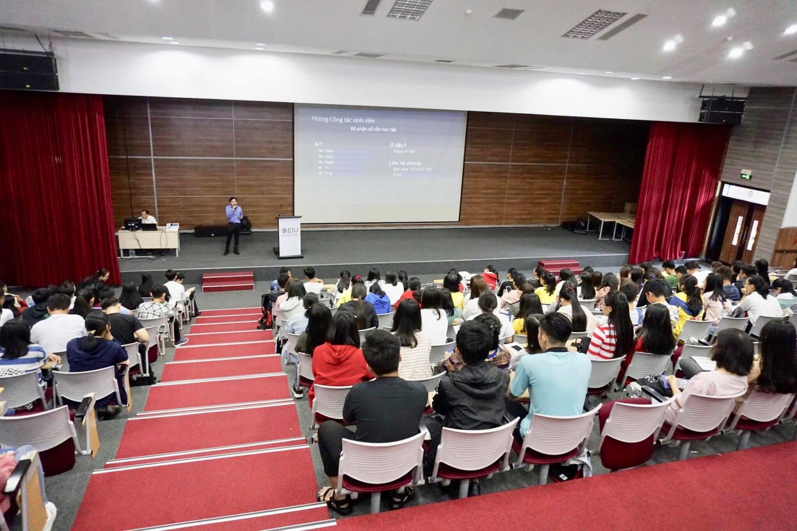 Buổi sinh hoạt đầu tiên trong chuỗi các hoạt động của chương trình  chào đón gần 500 tân sinh viên sáng ngày 23/9 tại hội trường lớn EIU. Tham gia chương trình các bạn đã được cung cấp những thông tin quan trọng nhất để chuẩn bị cho một năm học mới, bao gồm các nội dung về: dịch vụ và cuộc sống sinh viên tại EIU; quy chế quy định về đào tạo tại EIU; điều kiện đạt và duy trì học bổng; chuẩn tiếng Anh IELTS tại EIU…