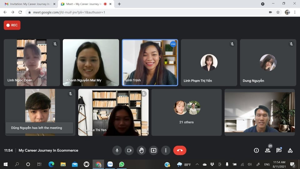 Những chia sẻ rất nhiệt tình về trải nghiệm công việc, xu hướng số hóa trong kinh doanh của Trúc Linh đã mở ra một cái nhìn rộng hơn cho các bạn sinh viên về nhu cầu nhân lực trong thị trường thương mại điện tử, các kỹ năng số quan trọng, từ đó giúp các bạn cập nhật xu hướng hiện tại và kiến thức cần trau dồi, học hỏi thêm. Linh cũng đã chia sẻ thêm các kênh tìm việc làm, chương trình thực tập… có ích cho sinh viên và động viên các bạn mạnh dạn tìm kiếm cơ hội trong thời điểm dịch bệnh hiện tại.