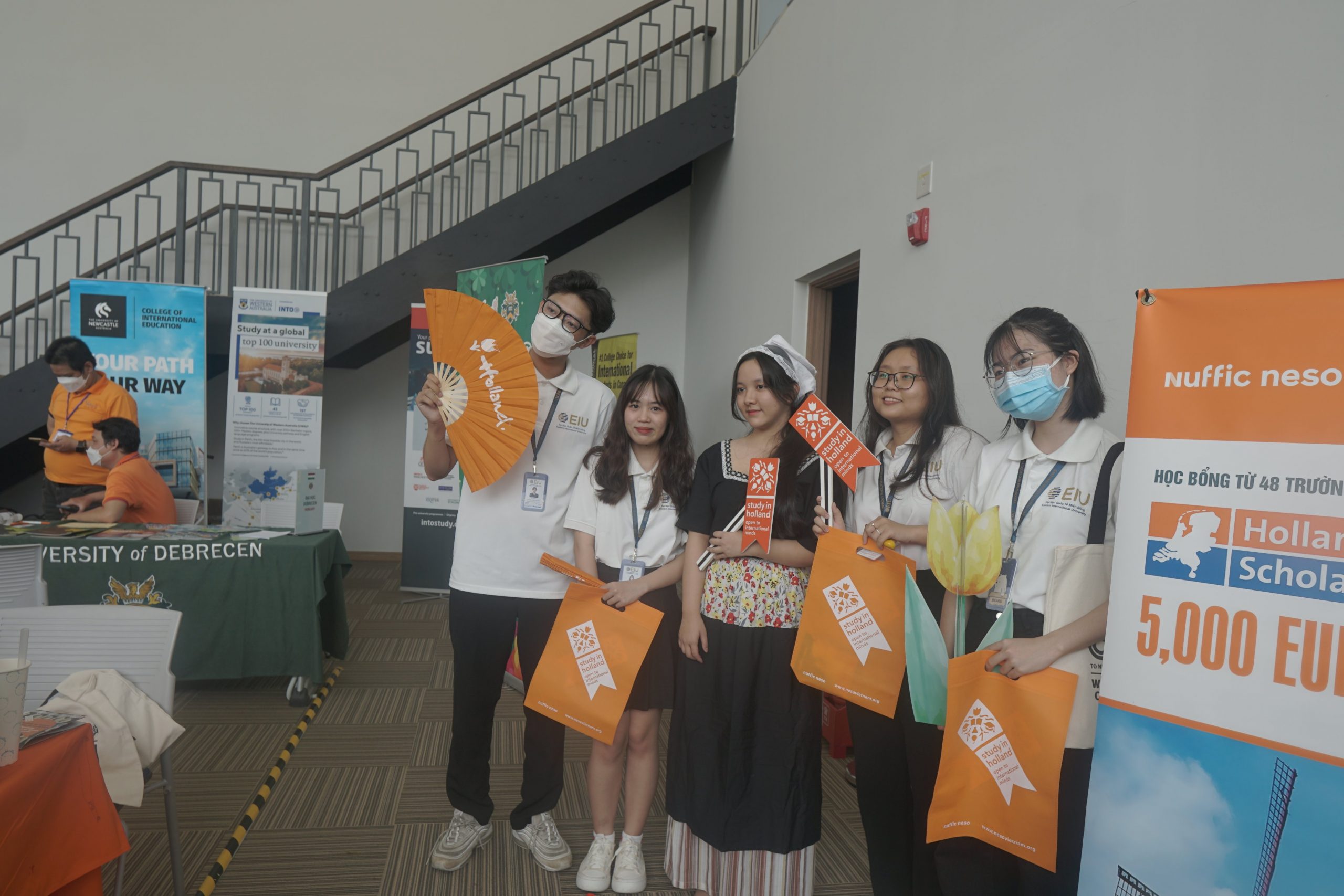 Tham gia chương trình, EIU đã có các buổi tư vấn, chia sẻ cùng quý phụ huynh và các bạn học sinh những thông tin chung về chương trình học cũng như môi trường học tập và trải nghiệm tại EIU, đặc biệt chính sách học bổng toàn phần nhằm thu hút nguồn nhân lực cho các khối ngành Kỹ thuật, Điều dưỡng, Công nghệ thông tin của Trường đã được rất nhiều khách tham quan tìm hiểu… Bên cạnh đó, các bạn đến ngày hội còn được giao lưu với giảng viên người bản ngữ tại Trung tâm Ngoại ngữ EIU, tham gia các trò chơi và nhận được nhiều phần quà hấp dẫn. Vấn đề về ngoại ngữ được các bạn học sinh quan tâm nhiều nhất là và chương trình học tiếng Anh ở Trường như thế nào, tiếng Anh của các bạn không được tốt lắm thì có thể học ở Trường không? Hiểu được băn khoăn của nhiều bạn học sinh, các thầy cô đã chia sẻ, tư vấn cụ thể về lộ trình học tiếng Anh, về chương trình học, đội ngũ giảng viên để các bạn thêm phần tự tin.