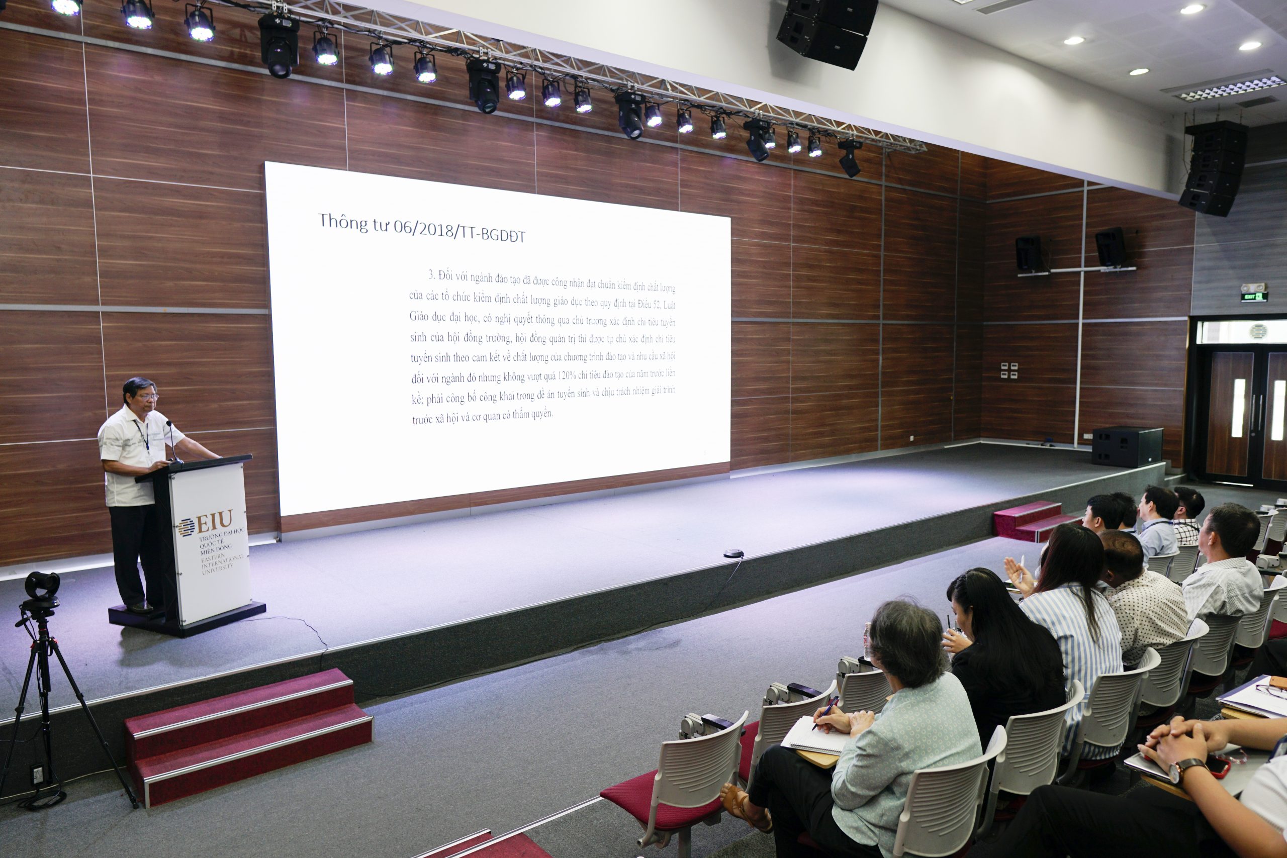 TS. Ngô Minh Đức – Hiệu trưởng EIU khẳng định hoạt động kiểm định chất lượng chương trình đào tạo không chỉ là cơ hội để EIU thể hiện những điểm mạnh của Trường mà còn giúp trường có quy trình liên tục cải tiến để đảm bảo chất lượng đào tạo gắn liền với triết lý giáo dục, sứ mạng, tầm nhìn và mục tiêu đào tạo của Nhà trường.