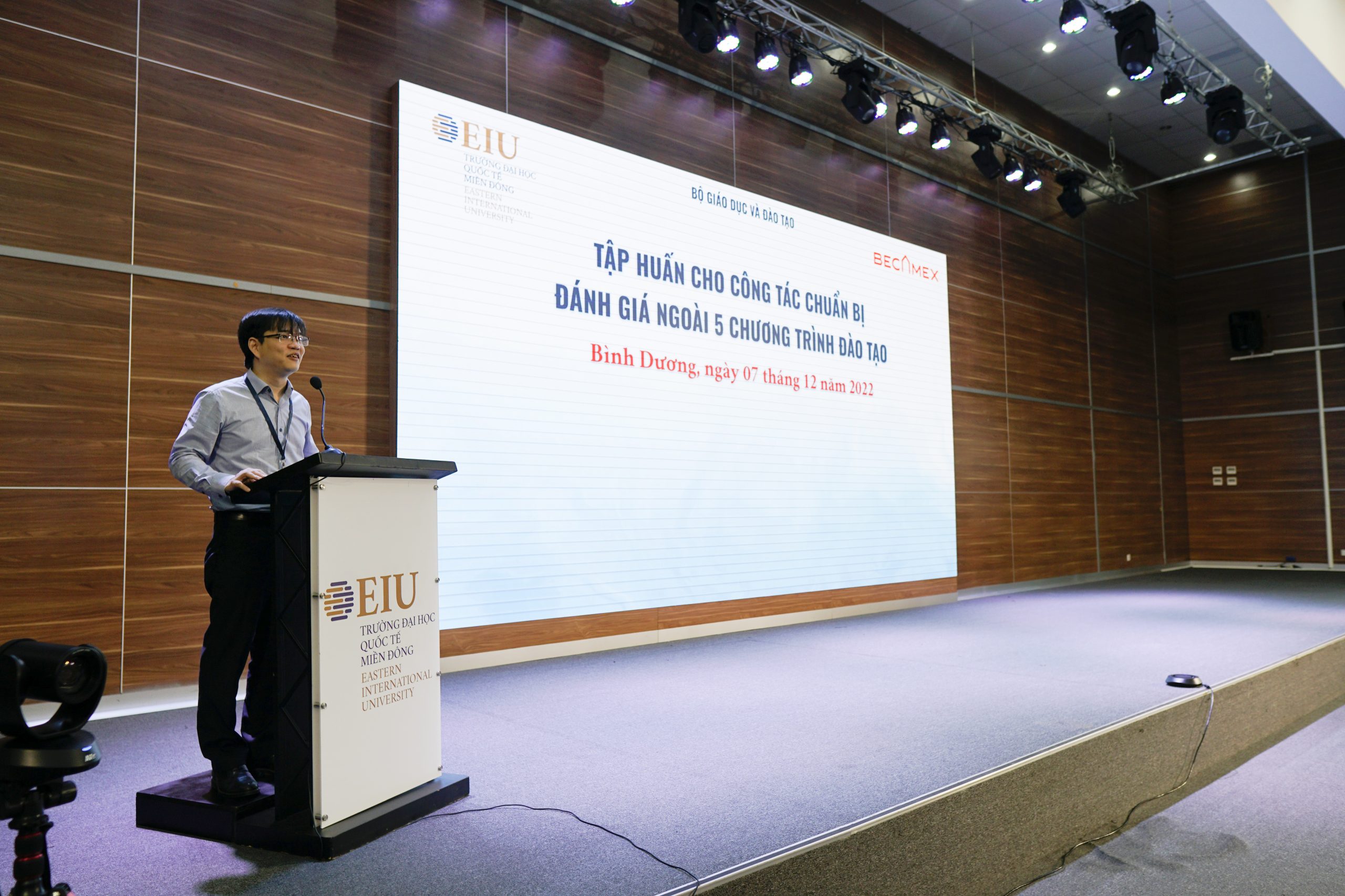 Sáng ngày 7/12/2022, HĐT/BGH cùng toàn bộ cán bộ, giảng viên và chuyên viên EIU đã tham gia buổi tập huấn để chuẩn bị cho công tác đánh giá ngoài 5 chương trình đào tạo (CTĐT) của Trường, bao gồm: Kỹ thuật Cơ điện tử, Kỹ thuật Điều khiển và Tự động hoá, Kỹ thuật phần mềm, Quản trị kinh doanh , Điều dưỡng.