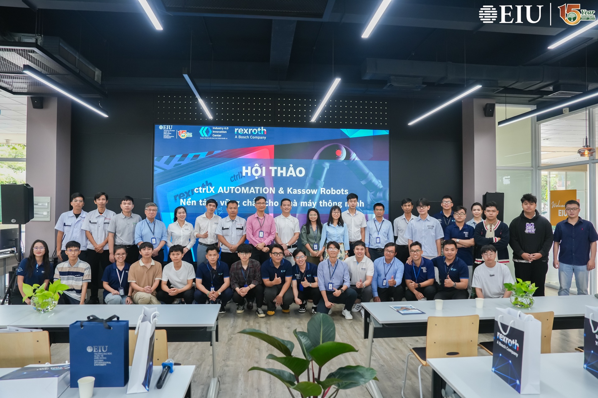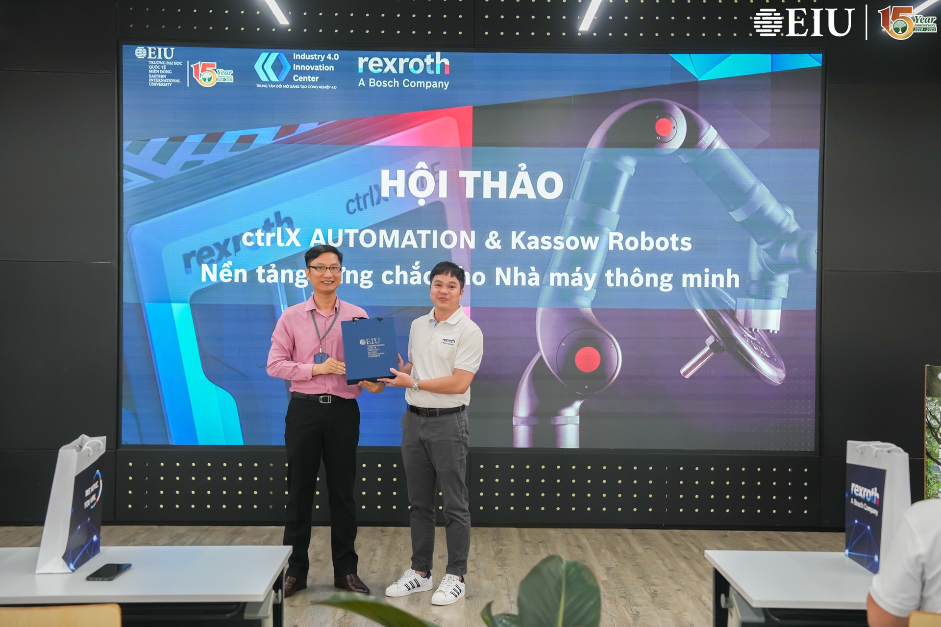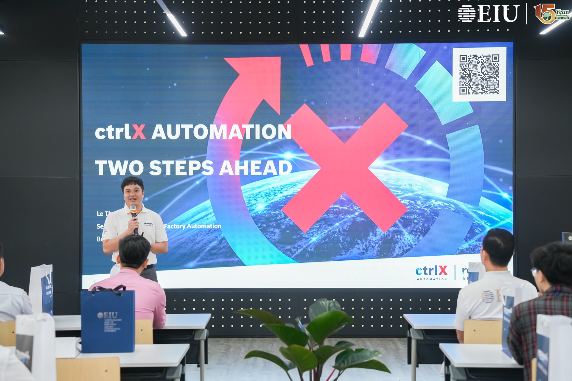 Sáng ngày 09/7, Trường Đại học Quốc tế Miền Đông (EIU) phối hợp cùng Bosch Rexroth tổ chức hội thảo với chủ đề “CtrlX Automation & Kassow Robots: Nền tảng vững chắc cho nhà máy thông minh”.