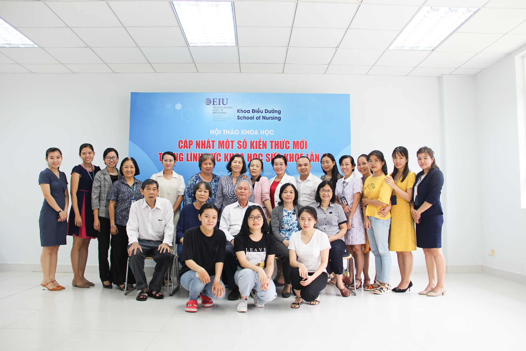 Sau sự hưởng ứng của hội thảo lần I, sáng ngày 22/07/2020 Khoa Điều Dưỡng EIU tiếp tục tổ chức buổi Hội thảo “Cập nhật một số kiến thức mới trong lĩnh vực khoa học sức khỏe lần II” với sự tham gia của các PGS.TS là thành viên ban Đề Án Khoa Y EIU cùng các Giảng Viên , các bạn sinh viên Kkoa Điều Dưỡng và các các bộ chuyên viên EIU. Hội thảo cung cấp nhiều kiến thức mới về các chủ đề như “Tỷ lệ suy yếu ở đái tháo đường tuýp II cao tuổi điều trị ngoại trú” do PGS.TS.Nguyễn Văn Trí trình bày về cách cải thiện, cách chăm sóc các bệnh nhân cao tuổi bị bện đái tháo đường; chủ đề về “Lão hóa da”, các nguyên nhân, tác động gây nên lão hóa da và Metformin trong việc điều trị lão hóa da (trình bày: TS. Trần Ngọc Ánh), “Hiệu quả của phương pháp da kề da với việc bú sữa mẹ của trẻ sịnh mổ tại bệnh viện TP.Hồ Chí Minh” (trình bày : ThS. Phan Thị Thùy Nguyên), “Báo cáo trường hợp lâm sàng nhân một trường hợp tổn thương thận cấp do uống khế chua” (trình bày:BS CKII. Nguyễn Thị Ngọc Linh), “Đánh giá chỉ số BMI của người bệnh ung thư vú đang hóa trị” (trình bày: ThS. Trần Thị Ngọc Toản), “Kiến thức và thái độ phòng ngừa lây nhiễm Viêm Gan B cuả sinh viên Điều Dưỡng trường Đại Học Quốc Tế Miền Đông” (trình bày: CN. Lê Hoàng Phúc)