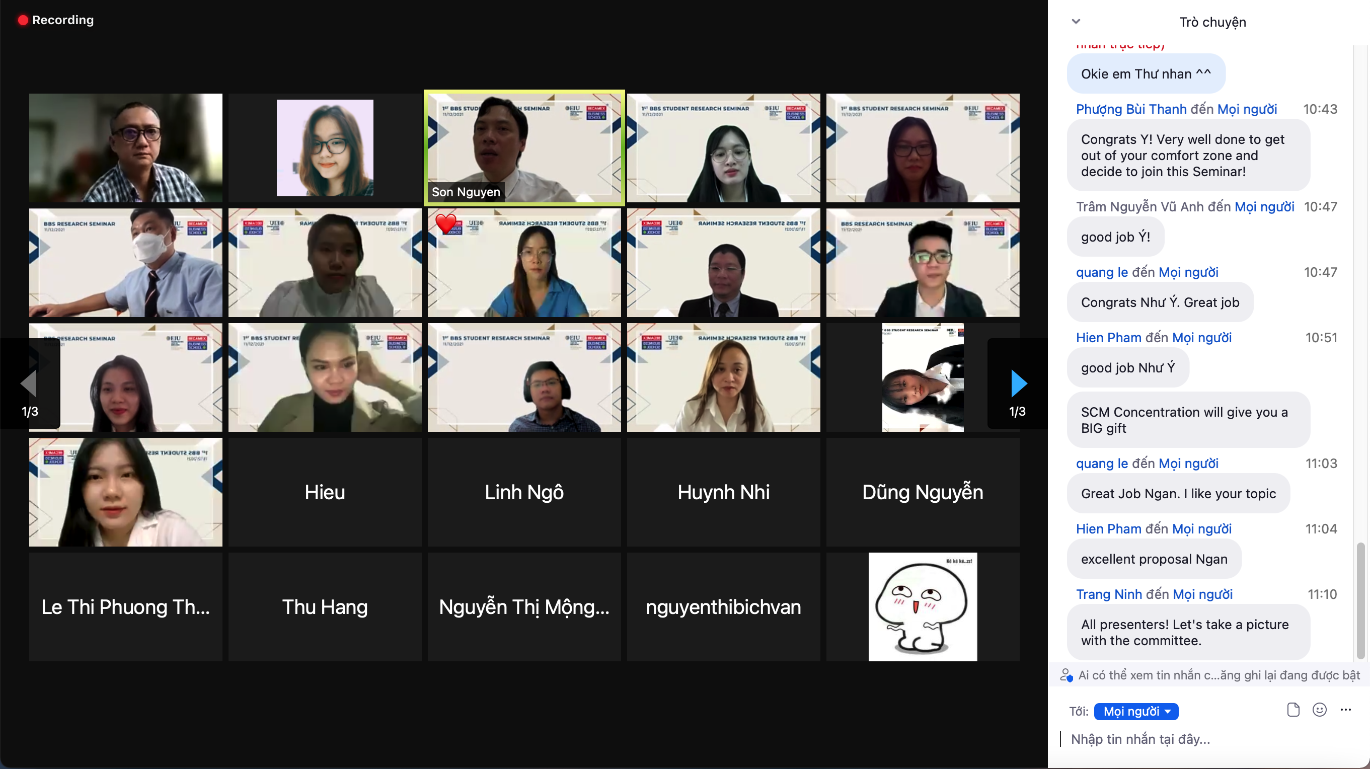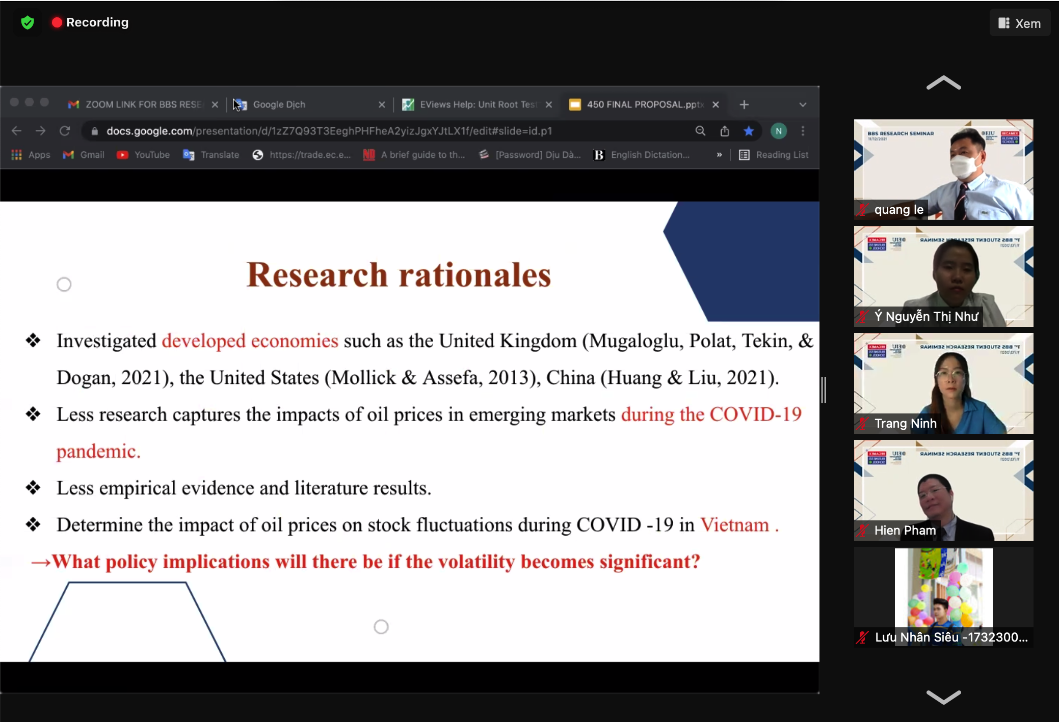 Buổi hội thảo trực tuyến được chia thành 2 phòng:phòng Research Proposal và Research Article.