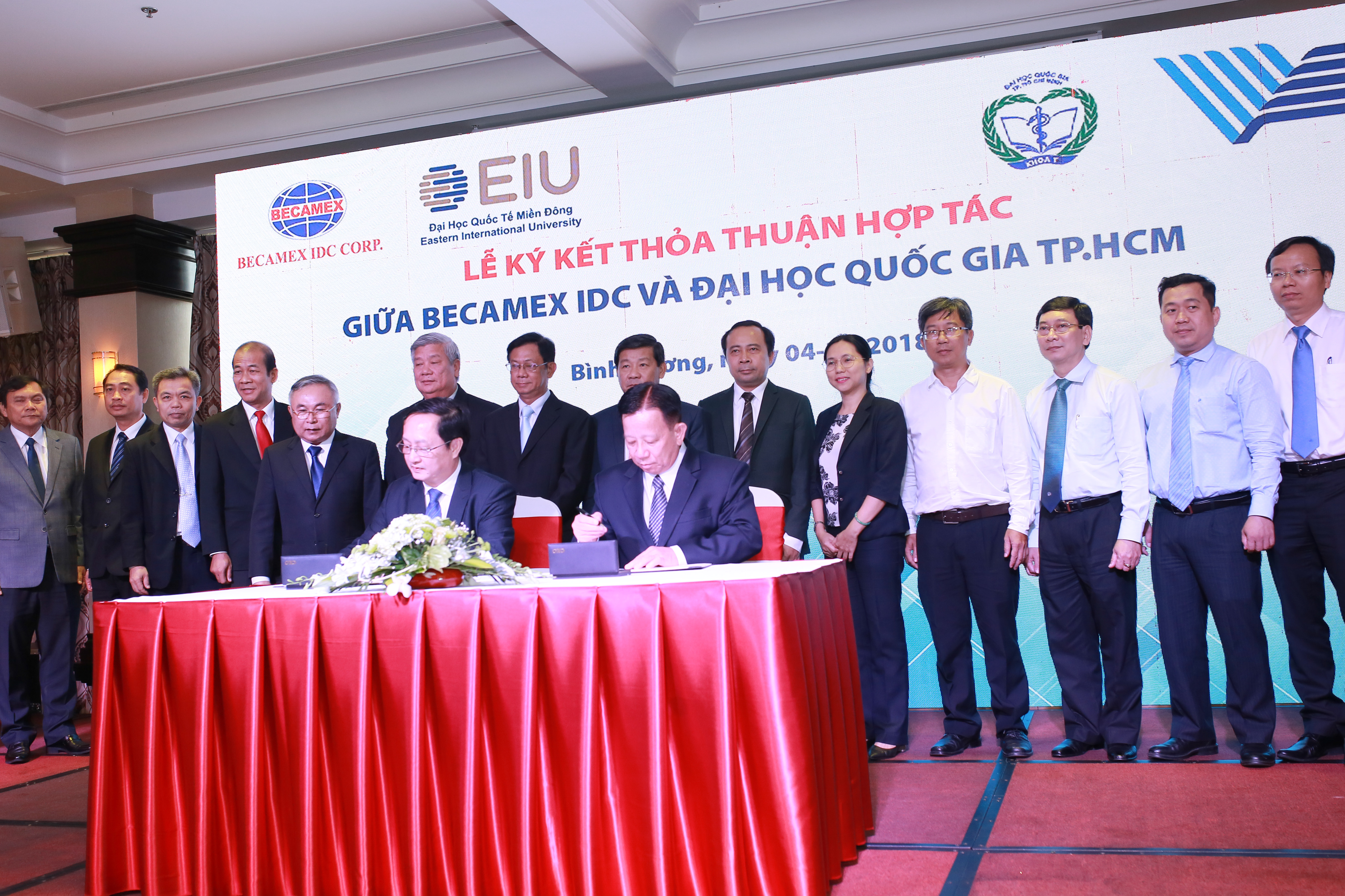 Chiều ngày 04/12/2018, tại khách sạn Becamex Thành phố Mới Bình Dương đã diễn ra buổi Lễ Ký kết hợp tác giữa Đại học Quốc gia TP.HCM và Tổng Công ty Đầu tư và Phát triển Công nghiệp – CTCP (Becamex IDC); giữa Khoa Y ĐHQG TP.HCM và ĐH Quốc tế Miền Đông (EIU).