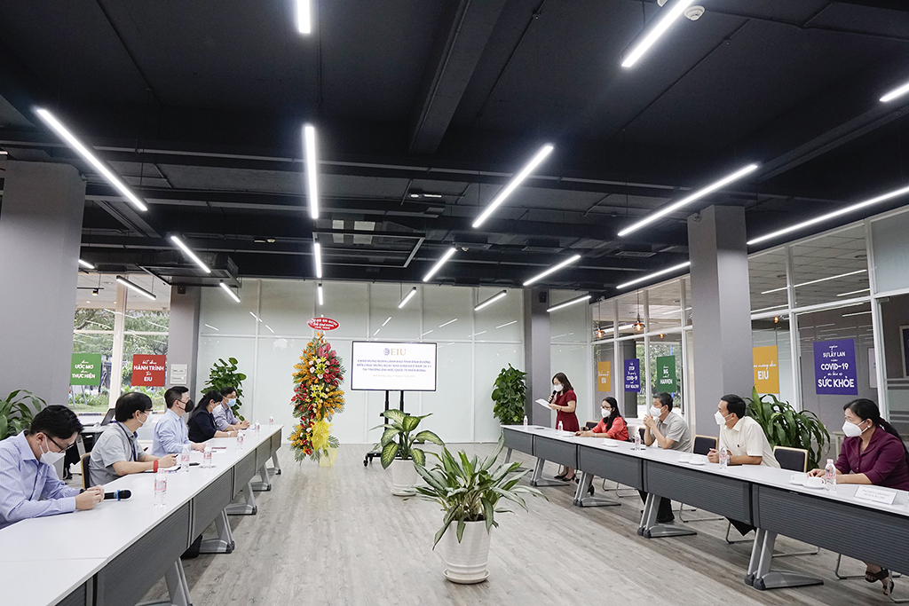 Ông Võ Văn Minh – Phó Bí thư Tỉnh ủy, Chủ tịch UBND tỉnh Bình Dương đánh giá cao những đóng góp tích cực cũng như những nỗ lực, cố gắng của tập thể cán bộ, giảng viên, nhân viên Nhà trường đã đạt được trong thời gian qua, đặc biệt là trong tình hình mới hiện nay. Đồng thời, Phó Bí thư Tỉnh ủy, Chủ tịch UBND tỉnh Bình Dương cũng trao tặng EIU lẵng hoa tươi thắm nhân dịp kỷ niệm 39 năm ngày Nhà giáo Việt Nam 20/11/1982 – 20/11/2021.