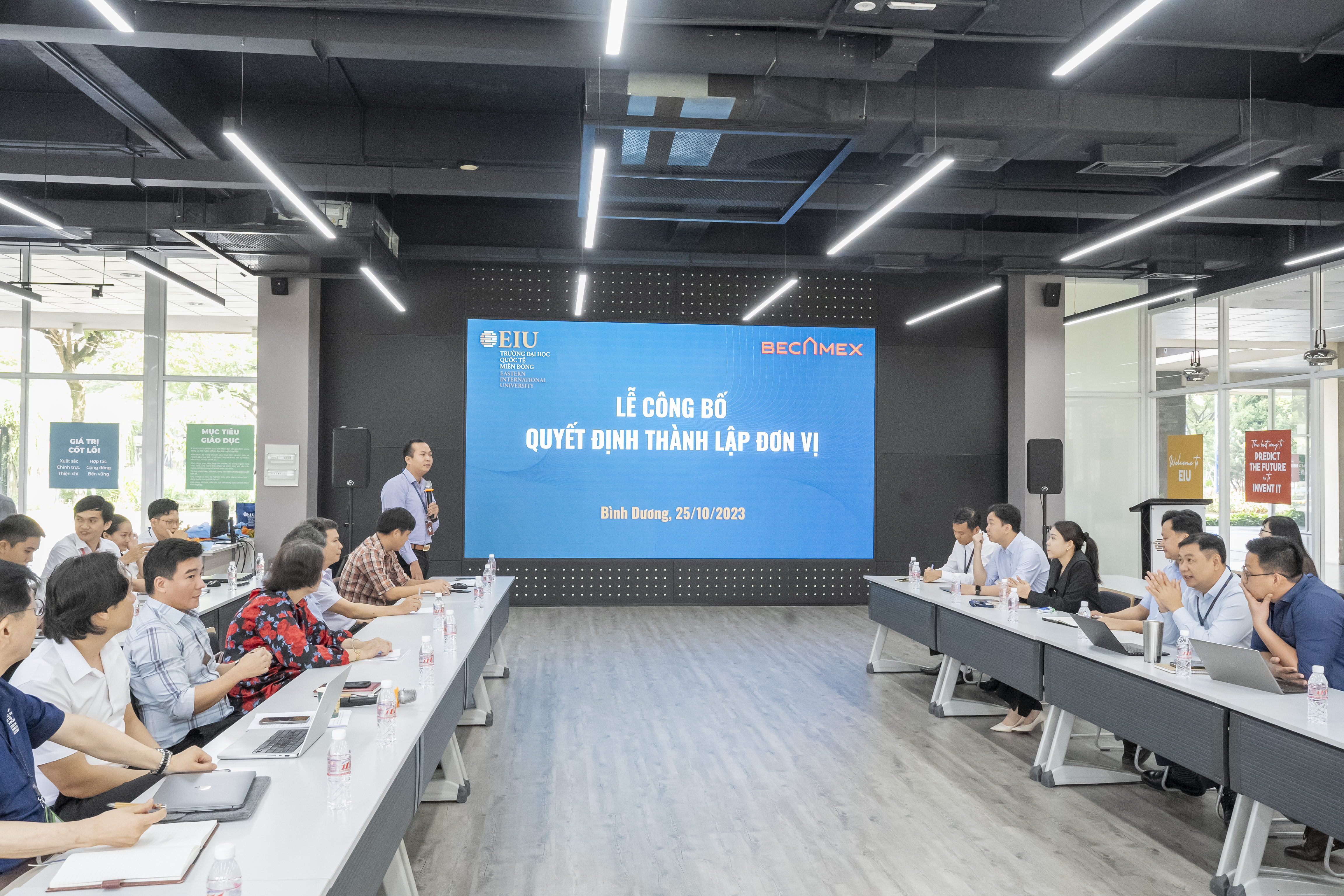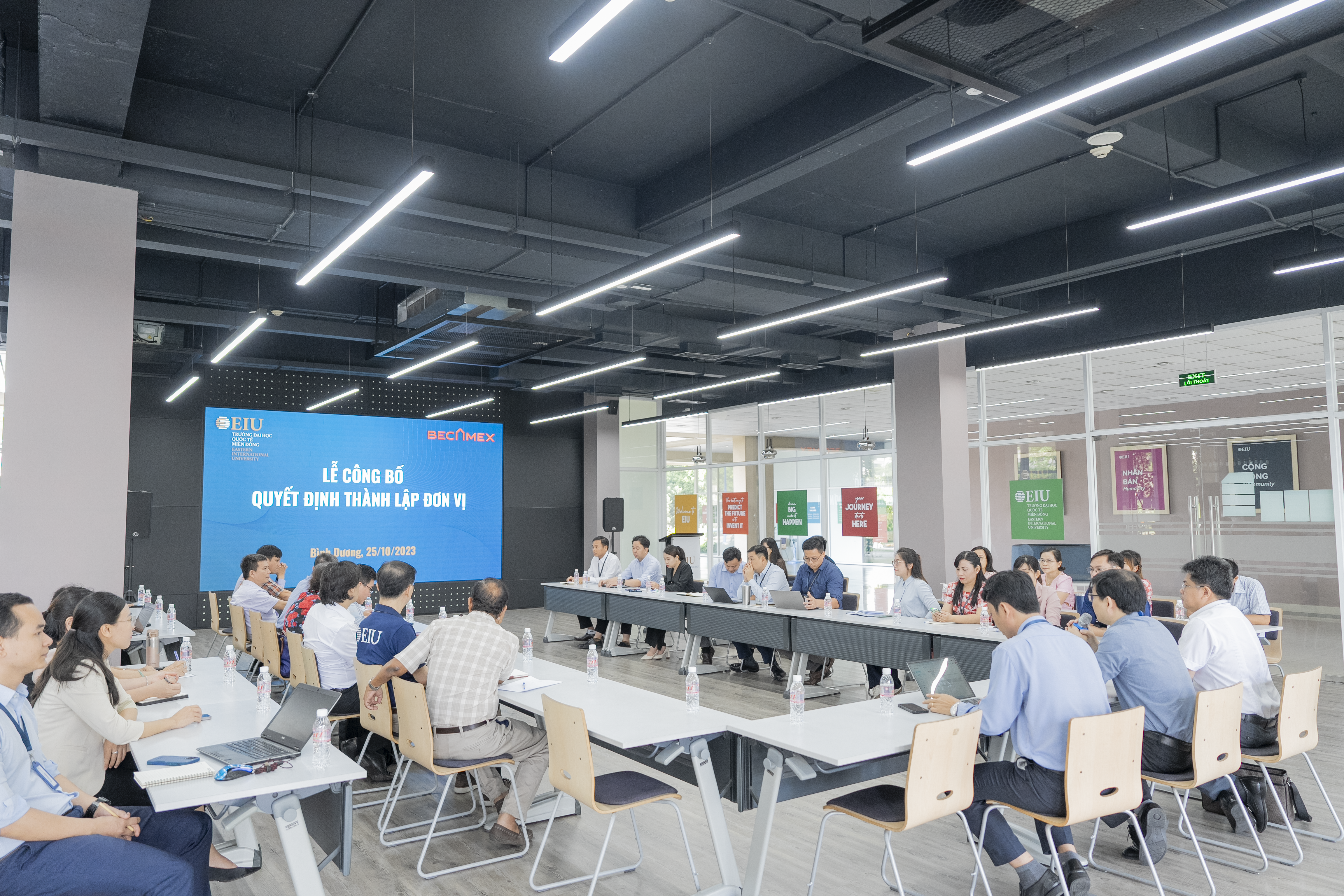 Ngày 25/10/2023, EIU tổ chức buổi Công bố Quyết định thành lập Phòng Tuyển sinh và điều động nhân sự, bổ nhiệm cán bộ quản lý đối với các chức danh: Trưởng phòng Tuyển sinh, Phó trưởng phòng – Phòng Truyền thông và Trợ lý Hội đồng trường/Ban giám hiệu. Tham dự buổi công bố Quyết định có BGH Nhà trường; cùng với lãnh đạo các khoa; cán bộ quản lý của Trường.